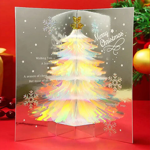 🎄[ Überlegenes Material ] Die Farbe des dreidimensionalen Weihnachtsbaums wird mit PET-Material verfeinert, die Farbe der Grußkarte ist dicker Karton, der Umschlag besteht aus milchig weißem Schwefelsäurepapier und es kommen Heißprägung und Lasertechnik hinzu.