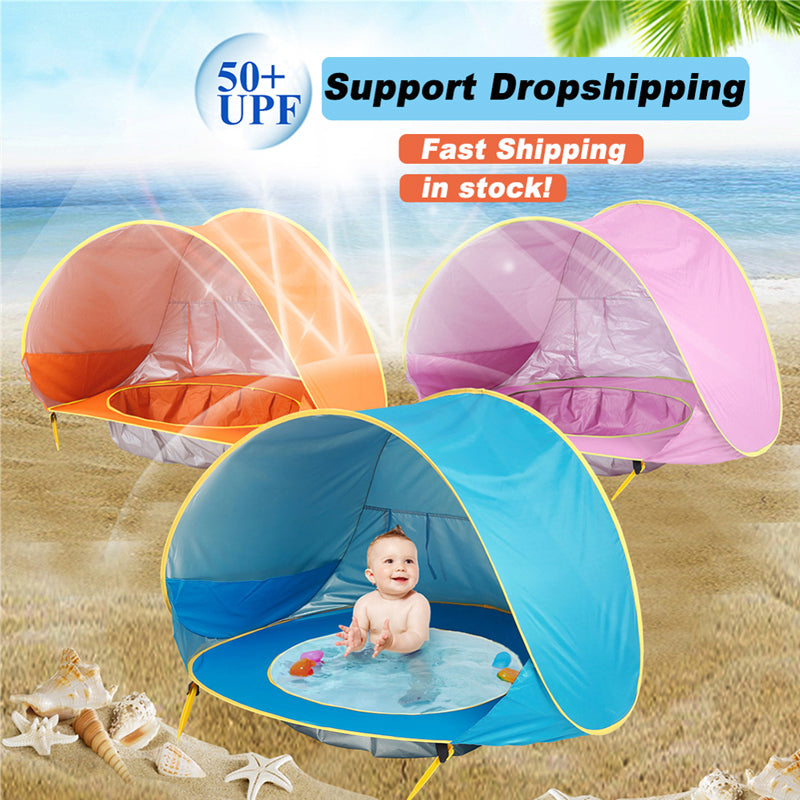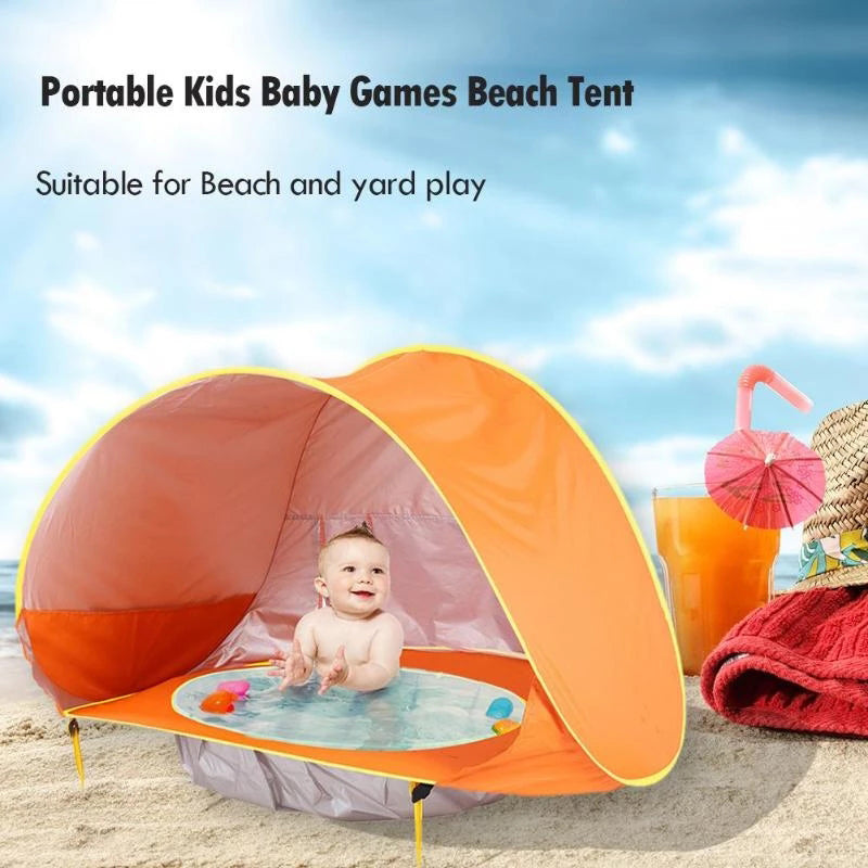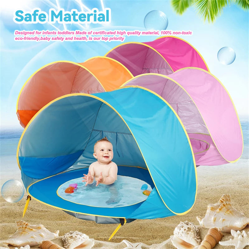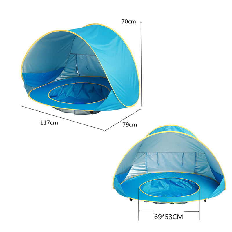 Wenn der kleine Pool gefüllt ist, kann das Baby im Wasser spielen. Eine tolle Wahl für Baby und Eltern, um gemeinsam eine schöne Zeit am Meer zu verbringen!