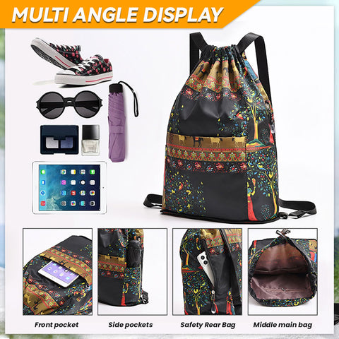 ✅【Detailliertes Design】- Eine Haupttasche, zwei Seitentaschen und eine Vordertasche bieten Platz für Gegenstände. Die mehrschichtigen Strukturen können auch trocken und nass trennen. Das Kordelzug-Design erleichtert das Öffnen und Schließen.