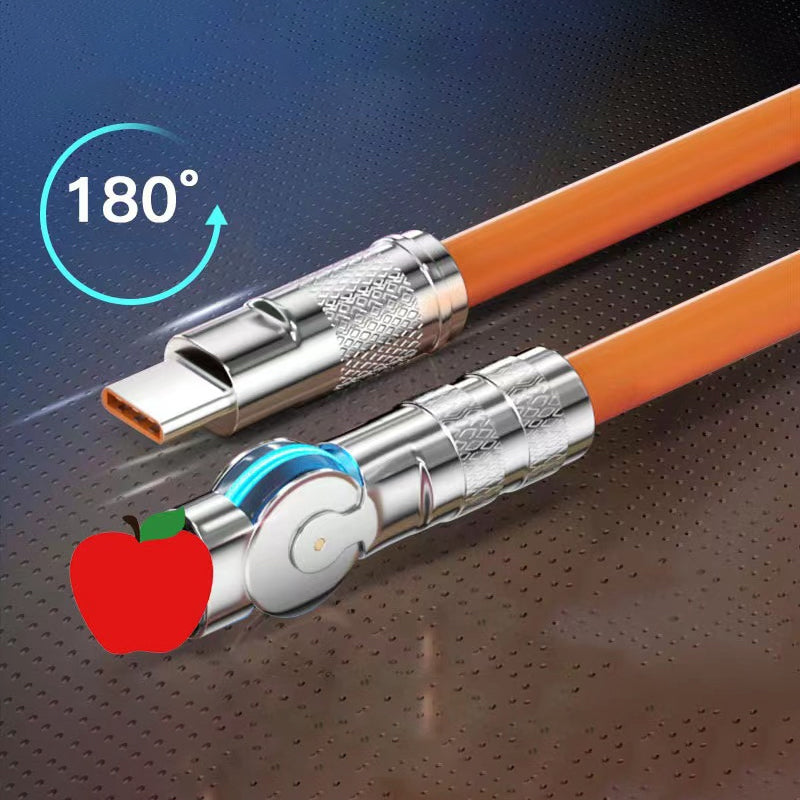 180-Grad-Drehung: Befreien Sie sich von traditionellen Einschränkungen mit unserem Datenkabel mit einem um 180 Grad drehbaren Stecker. Sie können Ihr Gerät mühelos aus jedem Winkel anschließen und müssen es nicht mehr umständlich biegen und verdrehen. Genießen Sie unvergleichlichen Komfort und Anpassungsfähigkeit bei jeder Verbindung.