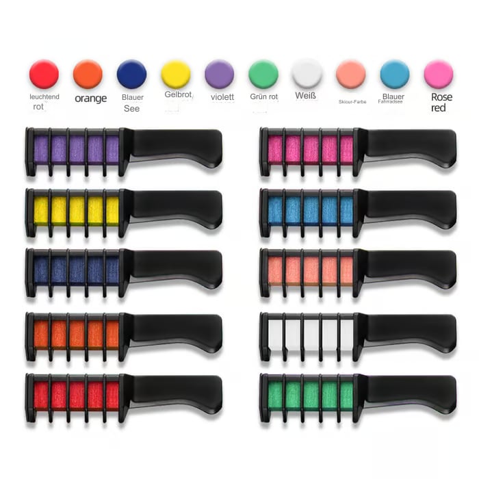 🎅【Einfach zu verwenden】 Mit dem Design eines festen Kamms lassen sie sich leicht von oben bis unten auf Ihr Haar auftragen, ohne Ihre Hände zu verfärben. Halten Sie Ihre Hände farbfrei. Diese Haarkreide verfügt über einen kleinen Kammapplikator, mit dem Sie sie einfach in Ihr Haar bürsten können.