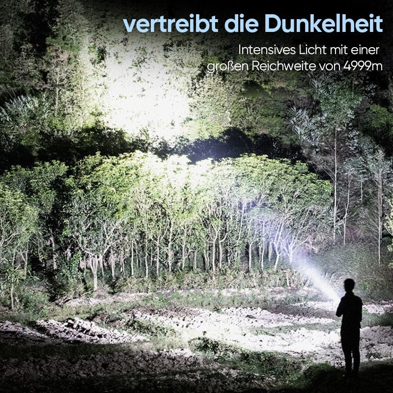 🔦 [Superhelle Taschenlampe] Die superhelle Taschenlampe wirft einen breiten Strahl, der problemlos einen ganzen Raum oder Ihren Garten beleuchtet und Dinge in einer Entfernung von bis zu 4999 m klar beleuchtet. Diese Taschenlampe hat eine lange Lebensdauer.