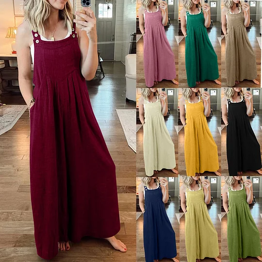 - 1 x 💝Ärmelloser Jumpsuit für Damen mit weitem Bein und Taschen