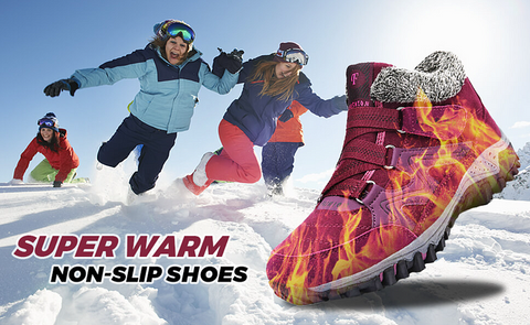 Die Sohle besteht aus rutschfestem TPR-Material, wodurch Sie sicher genug sind, um auf dem Schnee zu laufen. Das Obermaterial aus PU-Leder ist langlebig und nicht leicht zu zerkratzen.