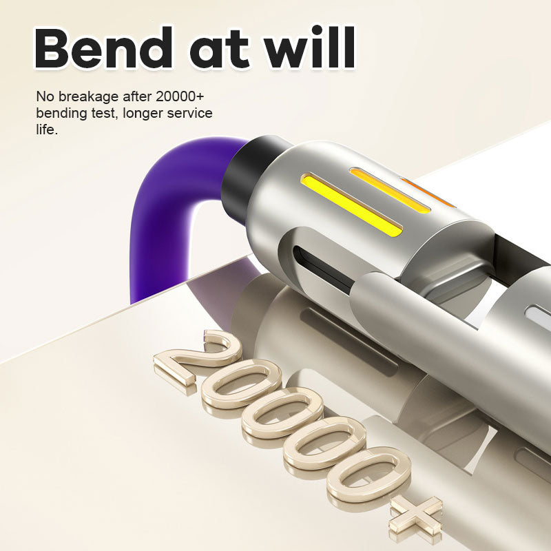 Erleben Sie die nächste Stufe an Komfort und Effizienz mit unserem 4-in-1-Schnellladedatenkabel mit einem leuchtenden Licht, das Ihr Ladeerlebnis erhellt. Dieses innovative Kabel ist so konzipiert, dass alle Ihre Geräte schnell und zuverlässig mit Strom versorgt werden, egal wo Sie sind..
